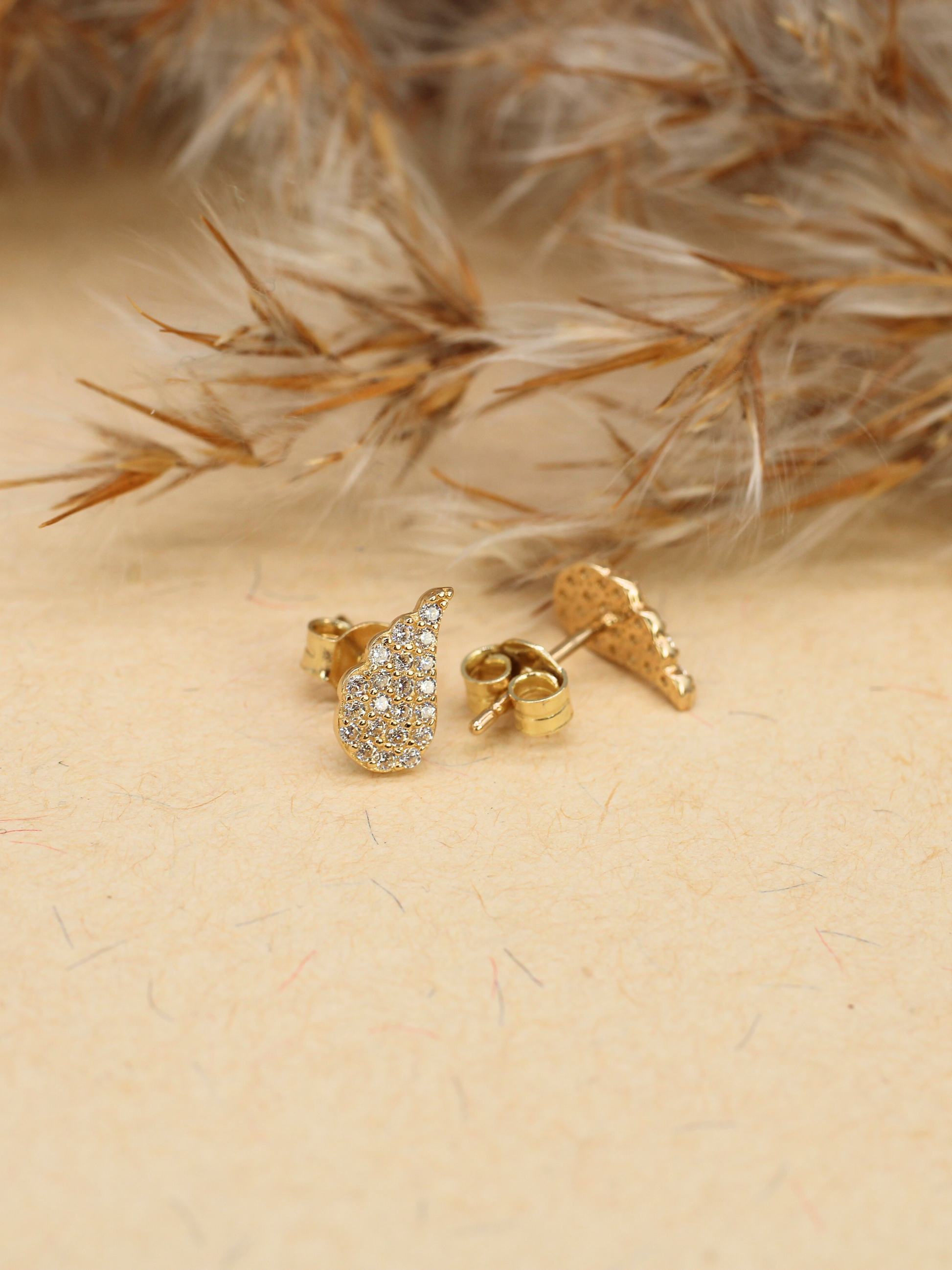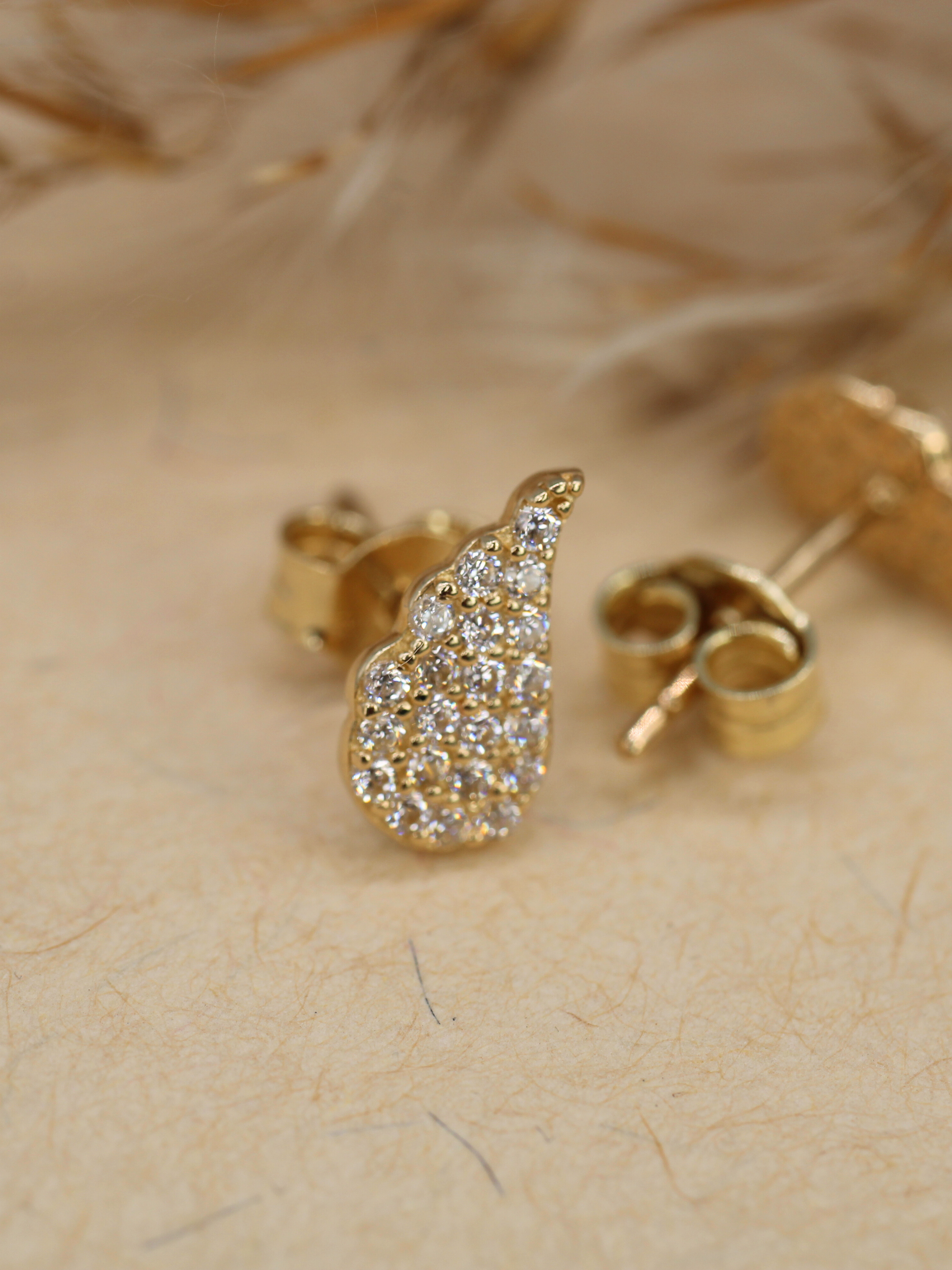 Diese atemberaubenden 14-karätigen Goldohrringe in Form eines Engelsflügels vereinen Eleganz und Bedeutung in einem einzigartigen Schmuckstück. Mit einer Länge von ca. 1 cm und funkelnden Zirkonia-Steinen verziert, setzen sie stilvolle Akzente und verleihen Ihrem Look eine besondere Strahlkraft.