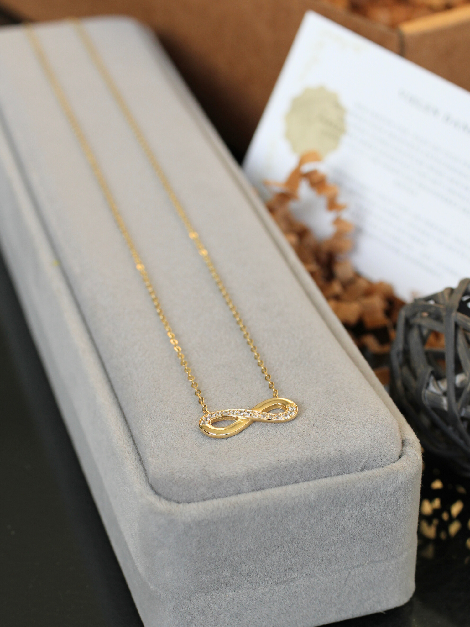 14K 585er Goldkette mit Infinity-Anhänger und Zirkonia