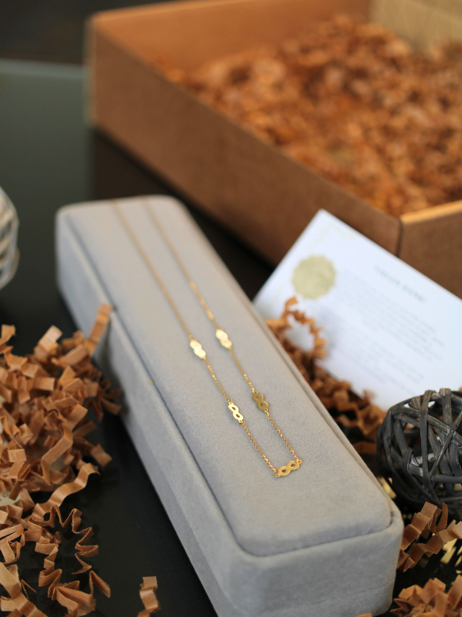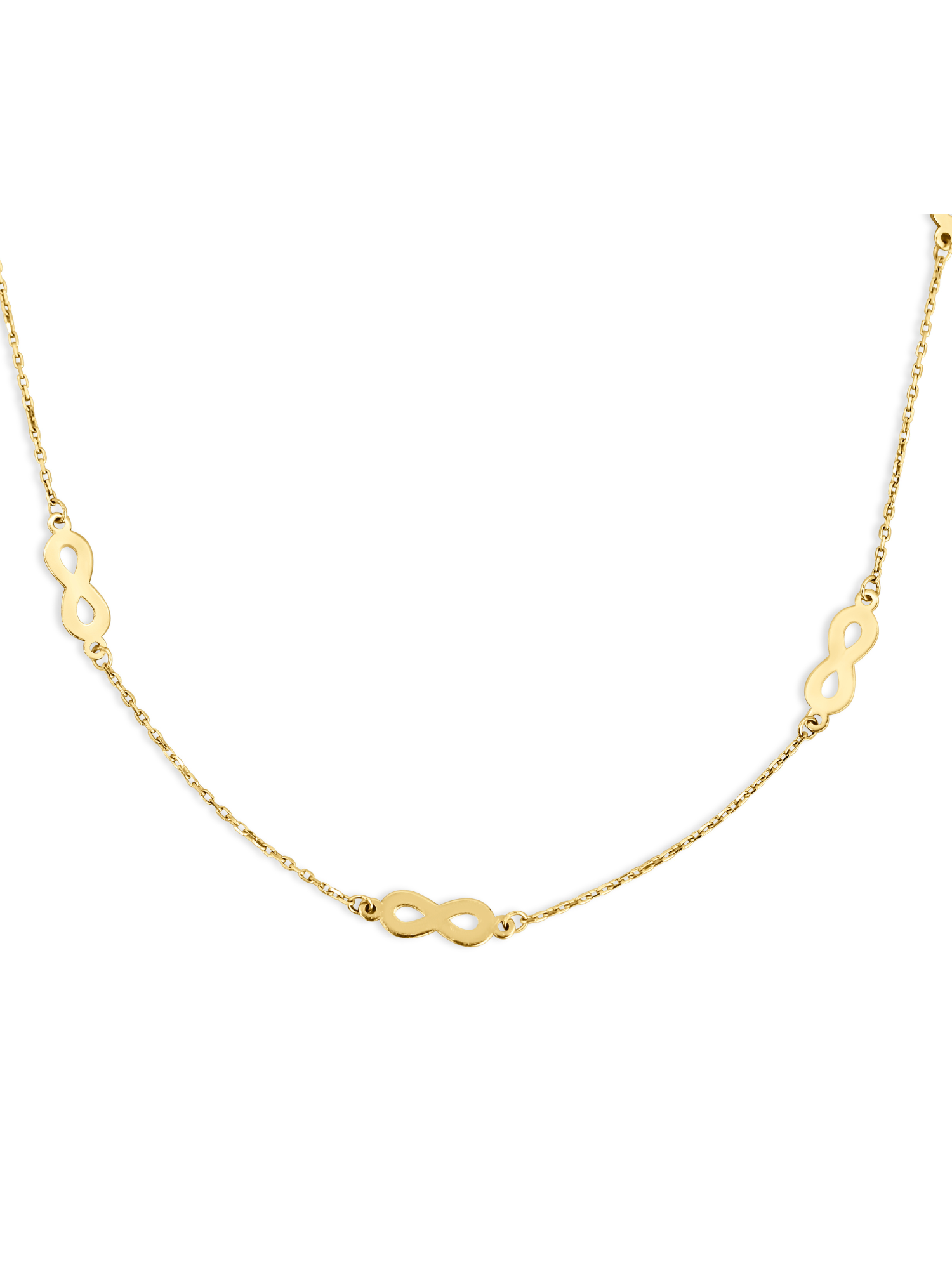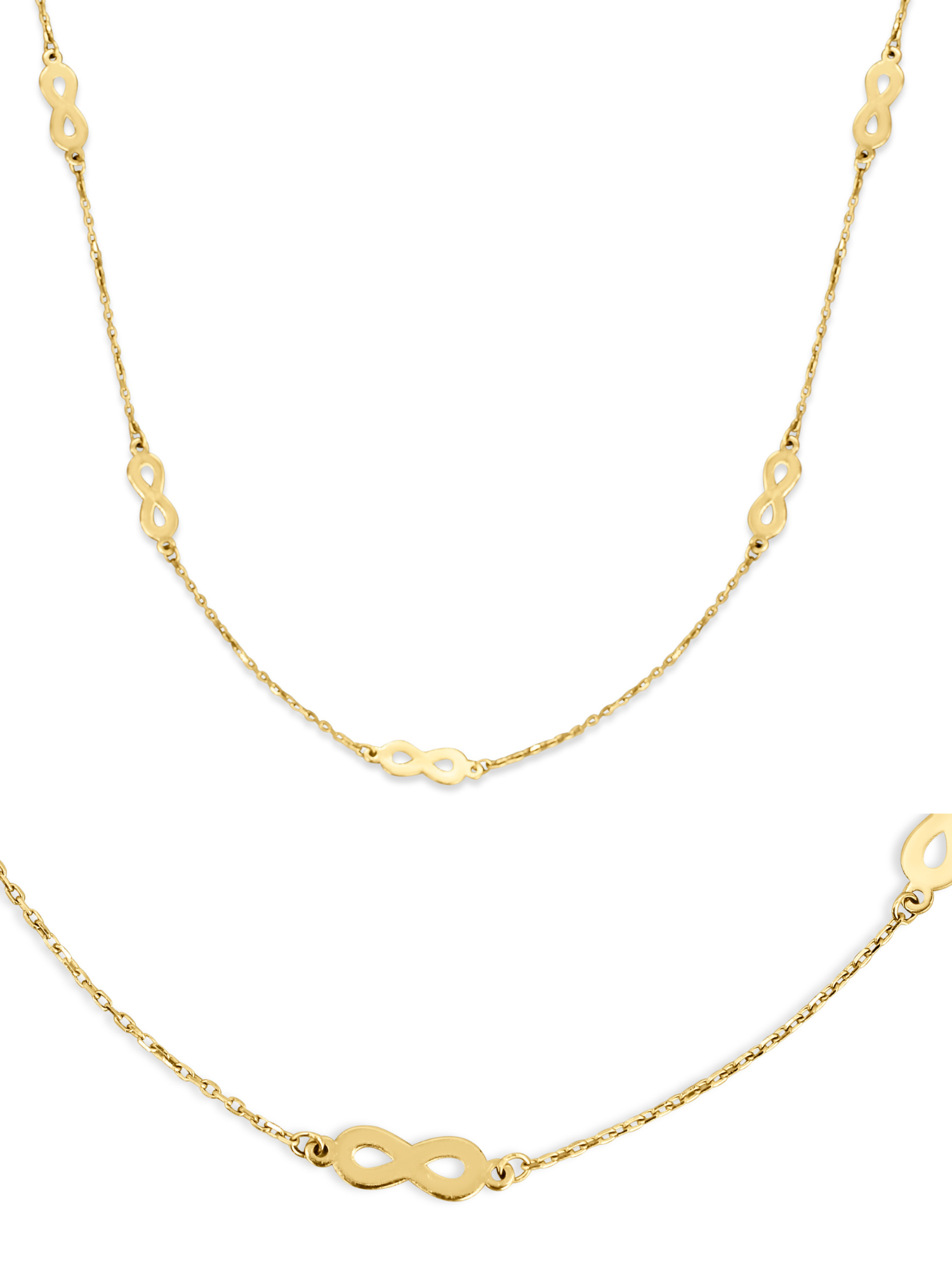 Produktbeschreibung – 14K (585er) Echtgold Halskette mit Unendlichkeitssymbolen – 40 cm