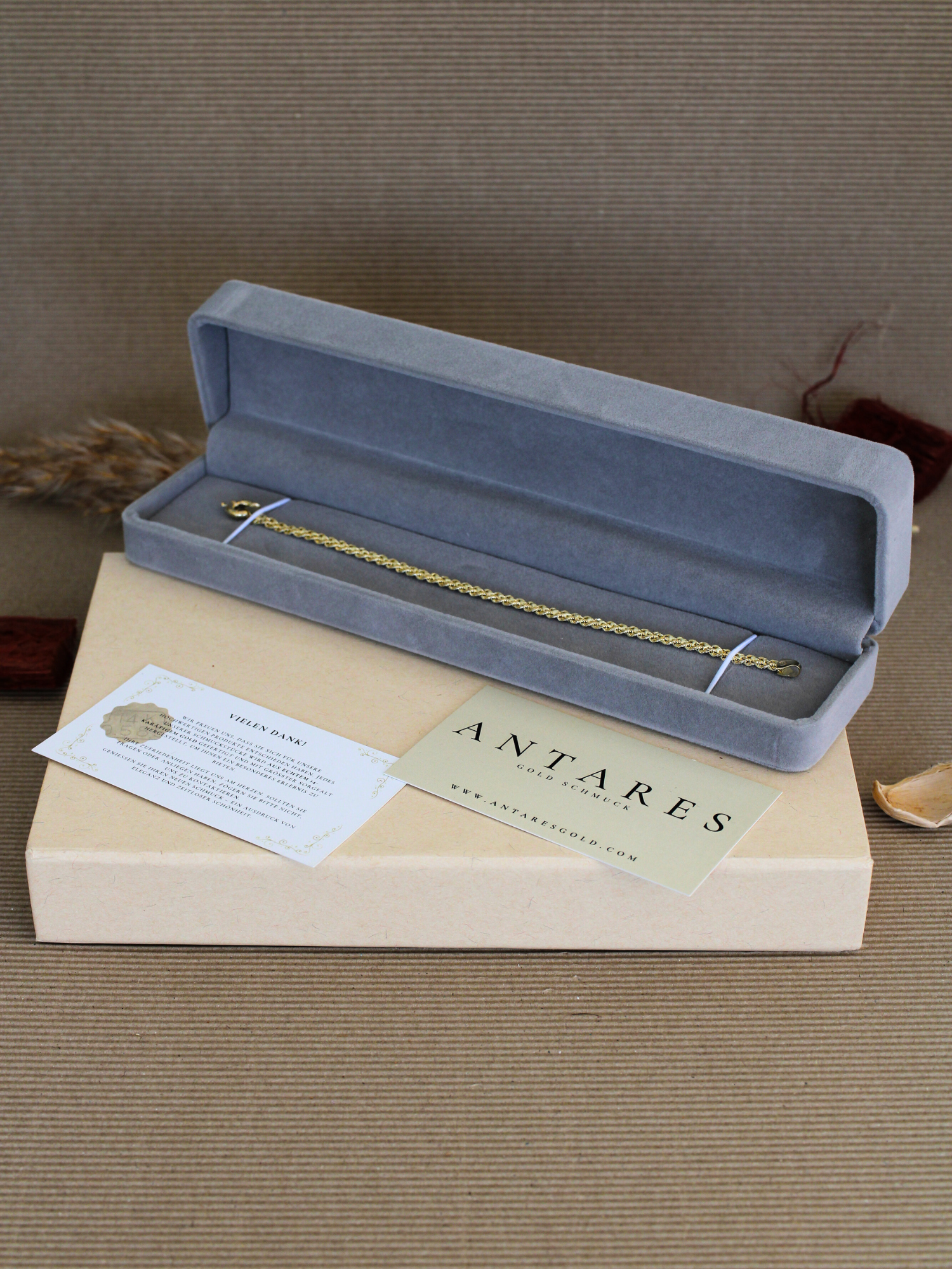 Mit einer Länge von 18 cm und seiner hervorragenden Verarbeitung aus hochwertigem Gold ist dieses Armband nicht nur ein stilvolles Accessoire, sondern auch eine langlebige Investition. Das filigrane, aber robuste Design unterstreicht Ihre Eleganz und setzt glänzende Akzente bei jedem Anlass.