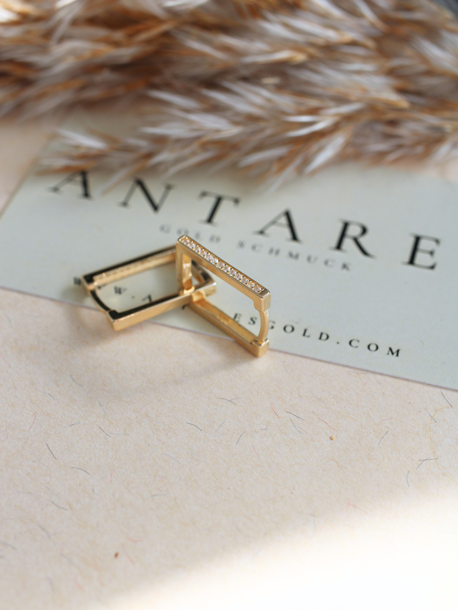 Die Aurea Gold Creolen vereinen modernes Design mit zeitloser Eleganz. Ihre rechteckige Form sorgt für einen markanten Look, während die funkelnden Zirkonia-Steine für ein luxuriöses Strahlen sorgen. Gefertigt aus hochwertigem 14-karätigem Gold, sind diese Creolen ein stilvolles Statement-Piece für jeden Anlass.